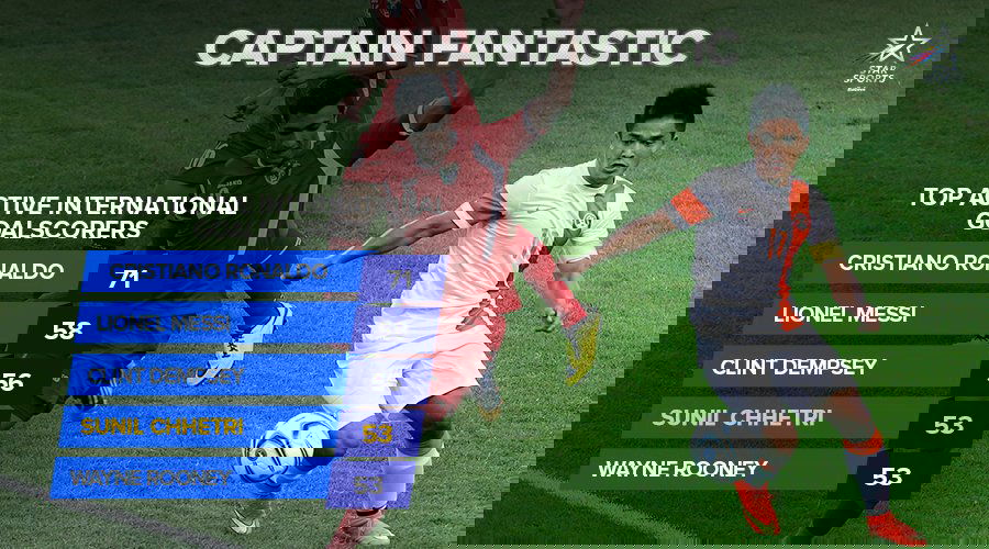Also the goal put past the Burmese goalkeeeper by the Indian skipper Sunil Chhetri in AFC Asian Cup Qualifier campaign put his name alogside Lionel Messi, Cristiano Ronaldo and Wayne Rooney.
