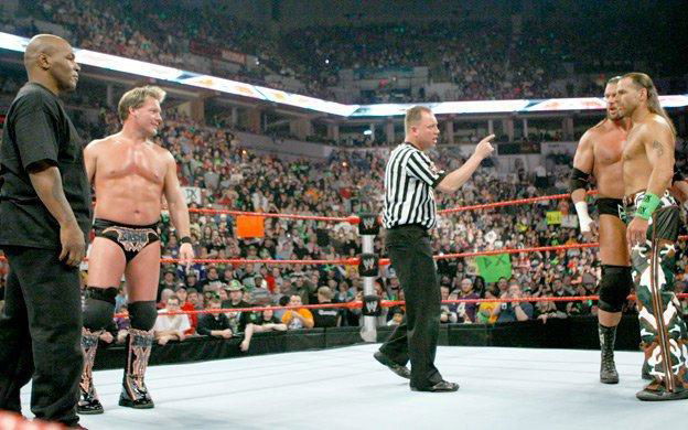 The two were slated to take on D-Generation X. However, towards the end of the bout, Tyson turned on Jericho, punching him in the face. Consequently, aligning himself with Triple H and Shawn Michaels.