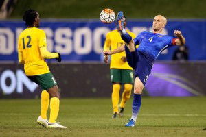 Nov 13, 2015; St.Louis, MO, USA; USA midfielder Michael Bradley (4) intercepts the ball during the first half of a FIFA World Cup Qualifying soccer match St. Vincent & The Grenadines at Busch Stadium. USA won 6-1. Mandatory Credit: Scott Kane-USA TODAY Sports