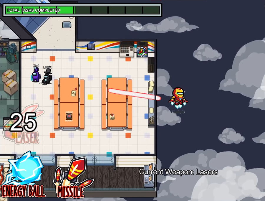 While playing with the Iron Man suit, impostors can fly in and out of the map with no limitations. They also have three special abilities they can use to kill crewmates. With the Energy Ball, the impostor can blind crewmates within a certain radius for a few seconds. With the Laser, the impostor can send a beam of energy that will kill anyone that comes in contact with it. Finally, players can also shoot multiple missiles that explode on contact with any crewmate and kill anyone in the blast radius.