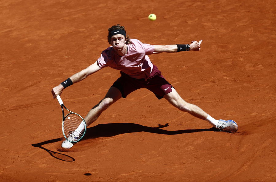 Andrey Rublev in action during his quarter final match against Italy’s Jannik Sinner REUTERS/Albert Gea