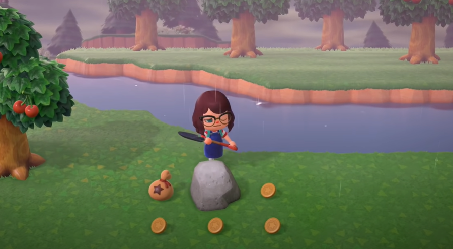 This will lead to players not getting every single bell drop from the rock. The best way would be to dig two holes before hitting the rocks behind you beforehand. Since you already have your shovel out, it would be best to search for some fossils all over the island. After searching for them, you should sell them to Blathers at the museum.