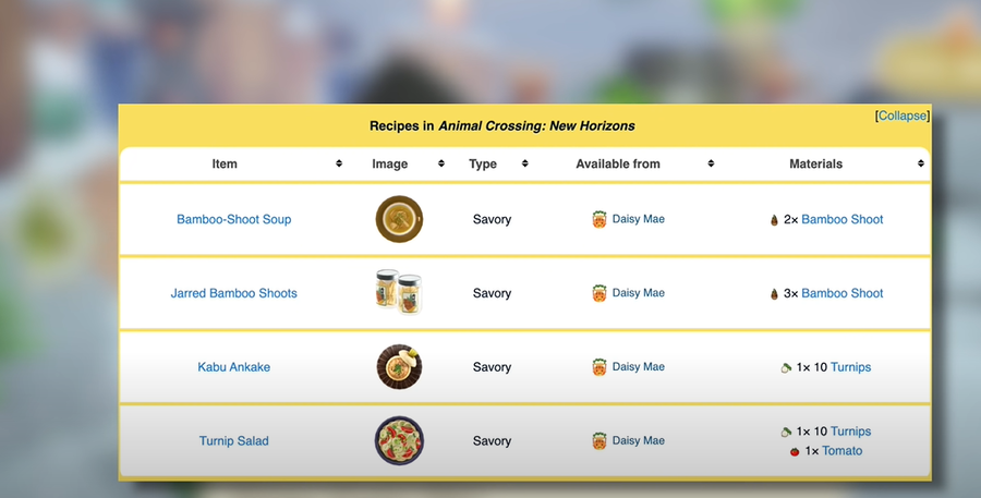 Daisy Mae, who sells players her turnips on players’ island, also has her own set of rewards. These rewards are Bamboo-Shoot soup, Jarred Bamboo Shoots, Kabu Ankake, and Turnip Salad. In order to get these items, users have to buy turnips from her every day.