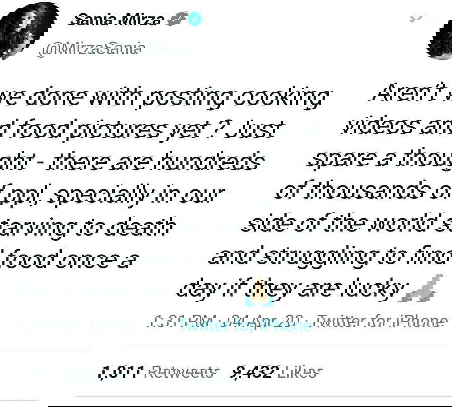 There is actually a lot of sense in what Sania speaks. Of course, there’s a lot of bad that’s happened with the advent of coronavirus and we all need to be a little more sensitive in our online activities. We can’t afford to give the impression that the world only consists of upper-class people who can beat the quarantine with Netflix.