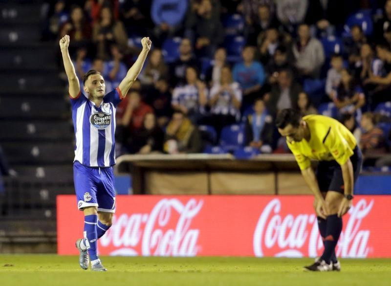 Deportivo Coruna’s Lucas Perez celebrates his goal against Atletico Madrid during their Spanish First Division soccer match at Riazor stadium in Coruna, Spain October 30, 2015. REUTERS/Miguel Vidal