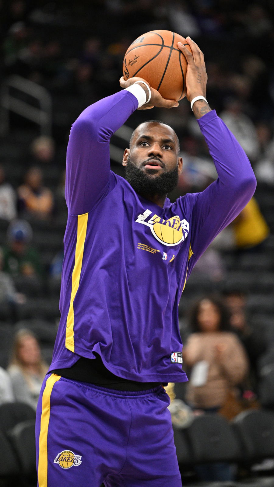 NBA, Basketball Herren, USA Los Angeles Lakers at Milwaukee Bucks Dec 2, 2022, Milwaukee, Wisconsin, USA Los Angeles Lakers forward LeBron James 6 shoots during pregame warmups at Fiserv Forum. Milwaukee Fiserv Forum Wisconsin USA, EDITORIAL USE ONLY PUBLICATIONxINxGERxSUIxAUTxONLY Copyright: xMichaelxMcLoonex 20221202_cec_ma9_060