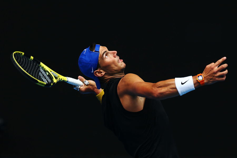 Rafael Nadal of Spain serves during a practice session ahead of the 2019 Australian Open at Melbourne Park on January 10, 2019 in Melbourne, Australia. (Photo by Michael Dodge/Getty Images)