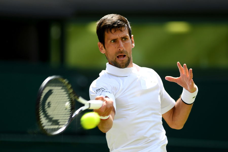 Novak Djokovic of Serbia plays a forehand in his Men’s Singles first round match against Philipp Kohlschreiber of Germany during Day one of The Championships – Wimbledon 2019 at All England Lawn Tennis and Croquet Club on July 01, 2019 in London, England. (Photo by Shaun Botterill/Getty Images)