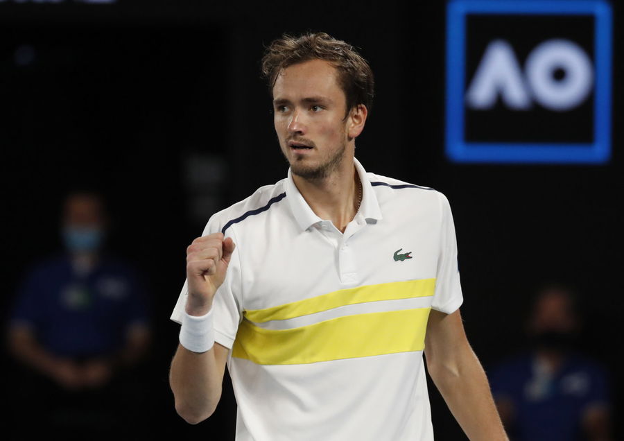 Tennis – Australian Open – Men’s Singles Final – Melbourne Park, Melbourne, Australia, February 21, 2021, Russia’s Daniil Medvedev reacts during his final match against Serbia’s Novak Djokovic REUTERS/Asanka Brendon Ratnayake