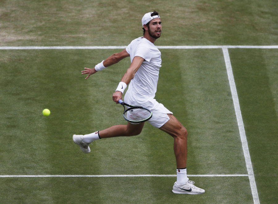 Tennis – Wimbledon – All England Lawn Tennis and Croquet Club, London, Britain – July 7, 2021 Russia’s Karen Khachanov in action during his quarter final match against Canada’s Denis Shapovalov REUTERS/Paul Childs