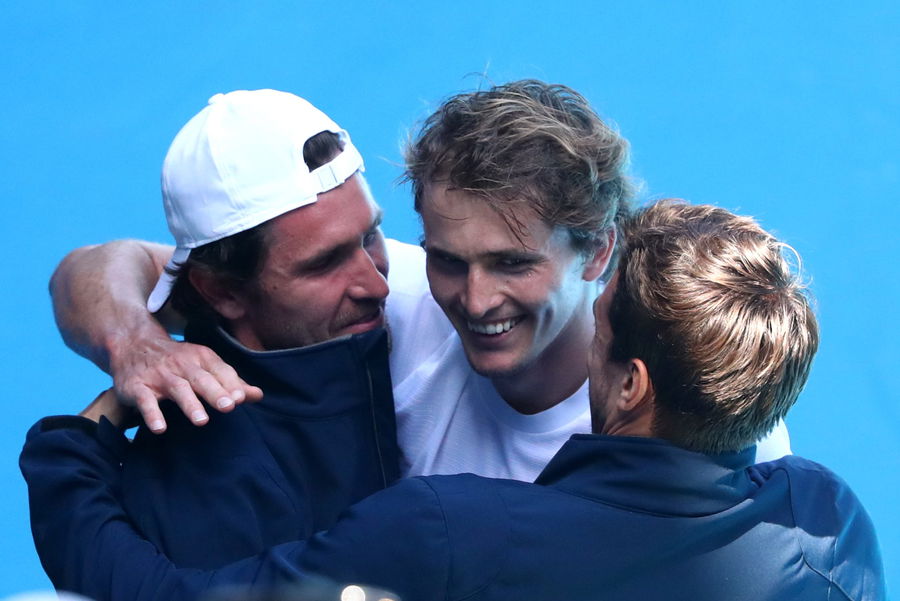 Tennis – ATP Cup – Melbourne Park, Melbourne, Australia, February 3, 2021. Germany’s Alexander Zverev celebrates winning his group stage match against Canada’s Denis Shapovalov. REUTERS/Kelly Defina
