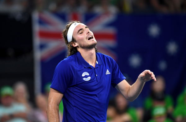 BRISBANE, AUSTRALIA – JANUARY 07: Stefanos Tsitsipas of Greece looks dejected after losing a point in his match against Nick Kyrgios of Australia during day five of the ATP Cup Group Stage at Pat Rafter Arena on January 07, 2020 in Brisbane, Australia. (Photo by Bradley Kanaris/Getty Images)