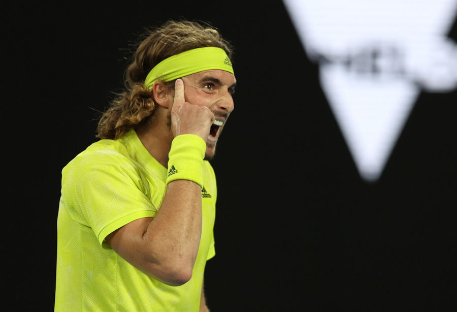 Tennis – Australian Open – Melbourne Park, Melbourne, Australia, February 11, 2021, Greece’s Stefanos Tsitsipas reacts during his second-round match against Australia’s Thanasi Kokkinakis REUTERS/Loren Elliott