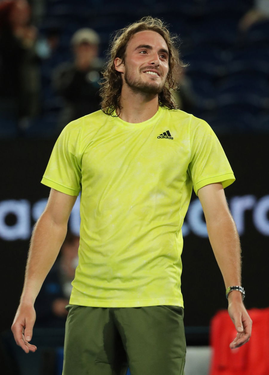 Tennis – Australian Open – Melbourne Park, Melbourne, Australia, February 9, 2021 Greece’s Stefanos Tsitsipas celebrates winning his first round match against France’s Gilles Simon REUTERS/Asanka Brendon Ratnayake