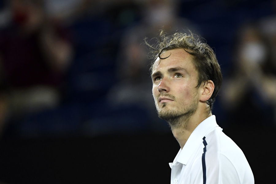 Tennis – Australian Open – Men’s Singles Final – Melbourne Park, Melbourne, Australia, February 21, 2021, Russia’s Daniil Medvedev reacts during his final match against Serbia’s Novak Djokovic REUTERS/Asanka Brendon Ratnayake