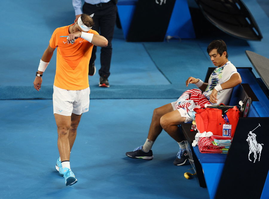 Tennis – Australian Open – Melbourne Park, Melbourne, Australia – January 18, 2023 Spain’s Rafael Nadal walks off the court to receive medical attention after sustaining an injury during his second round match against Mackenzie Mcdonald of the U.S. REUTERS/Hannah Mckay