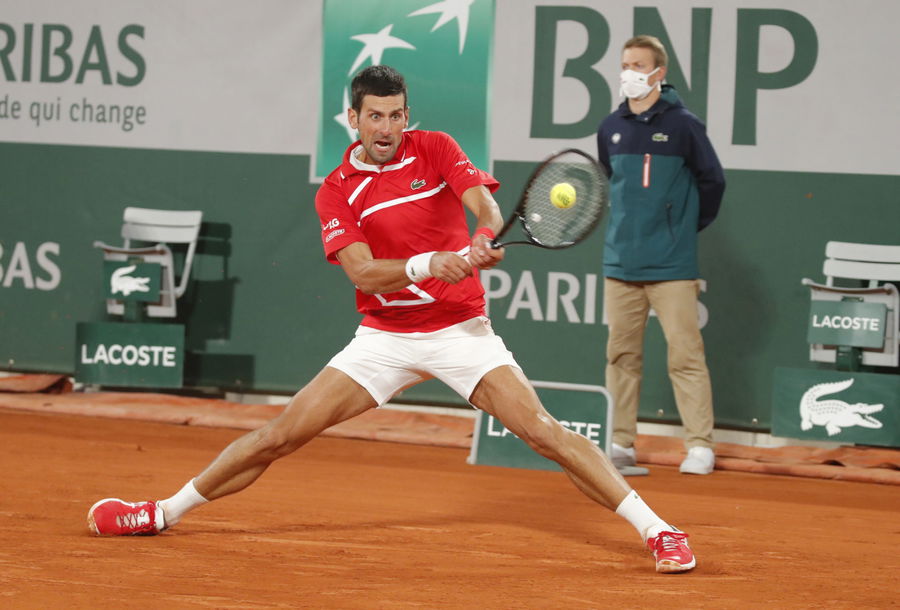 Tennis – French Open – Roland Garros, Paris, France – October 9, 2020 Serbia’s Novak Djokovic in action during his semi final match against Greece’s Stefanos Tsitsipas REUTERS/Charles Platiau