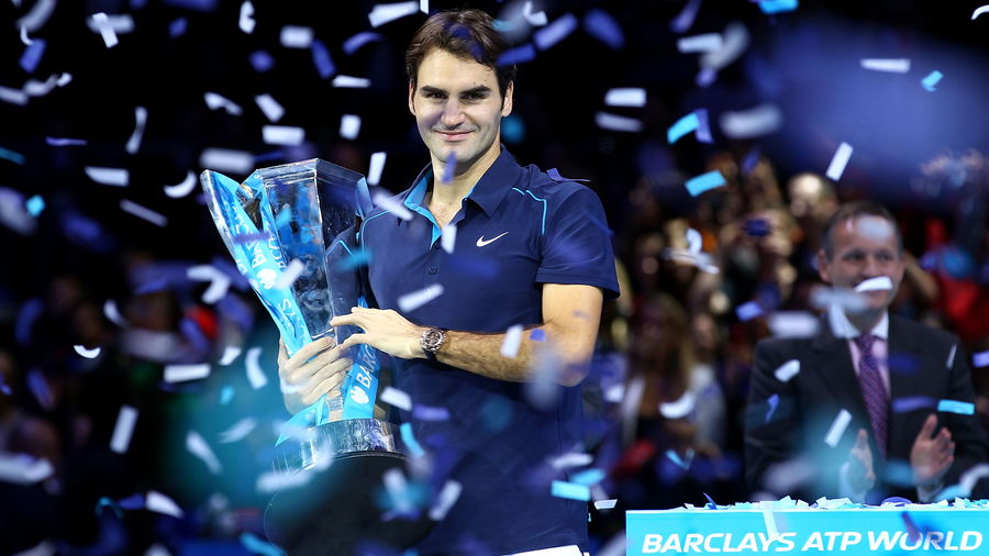 LONDON, ENGLAND – NOVEMBER 27: Roger Federer of Switzerland lifts the trophy following his victory during the men’s final singles match against Jo-Wilfried Tsonga of France during the Barclays ATP World Tour Finals at the O2 Arena on November 27, 2011 in London, England. (Photo by Julian Finney/Getty Images)