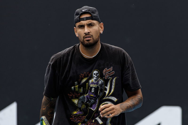 Tennis: Australian Open Jan 15, 2023 Melbourne, Victoria, Australia Nick Kyrgios of Australia rests during a practice session on court 16 at Melbourne Park. Melbourne Melbourne Park Victoria Australia, EDITORIAL USE ONLY PUBLICATIONxINxGERxSUIxAUTxONLY Copyright: xMikexFreyx 20230114_neb_zg6_239