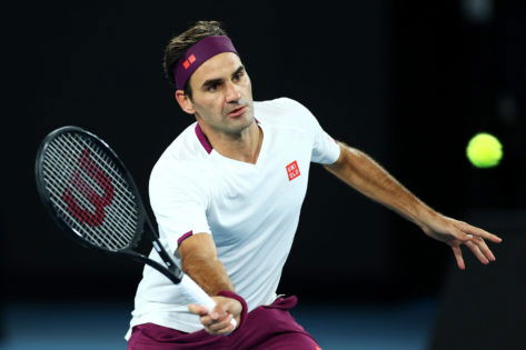 Roger Federer of Switzerland plays a forehand during his Men’s Singles fourth round match against Marton Fucsovics of Hungary on day seven of the 2020 Australian Open at Melbourne Park on January 26, 2020 in Melbourne, Australia. (Photo by Cameron Spencer/Getty Images)