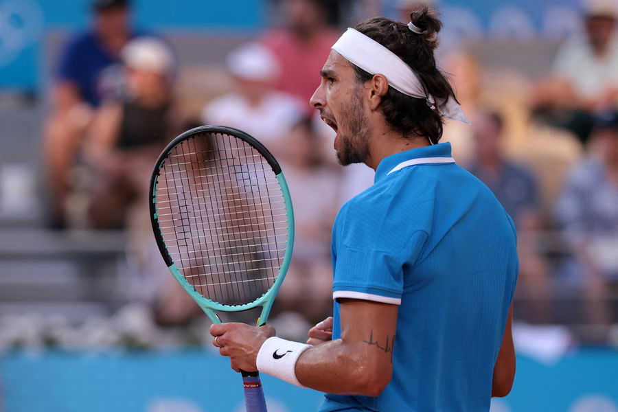 Paris 2024 Olympics – Tennis – Men’s Singles semifinals – Roland-Garros Stadium, Paris, France – August 02, 2024. Lorenzo Musetti of Italy reacts during his match against Novak Djokovic of Serbia. REUTERS/Claudia Greco