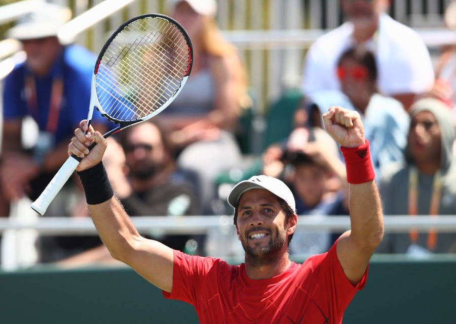 KEY BISCAYNE, FL – MARCH 26: Fernando Verdasco of Spain celebrates a point against Thanasi Kokkinakis of Australia in their third round match during the Miami Open Presented by Itau at Crandon Park Tennis Center on March 26, 2018 in Key Biscayne, Florida. (Photo by Clive Brunskill/Getty Images)