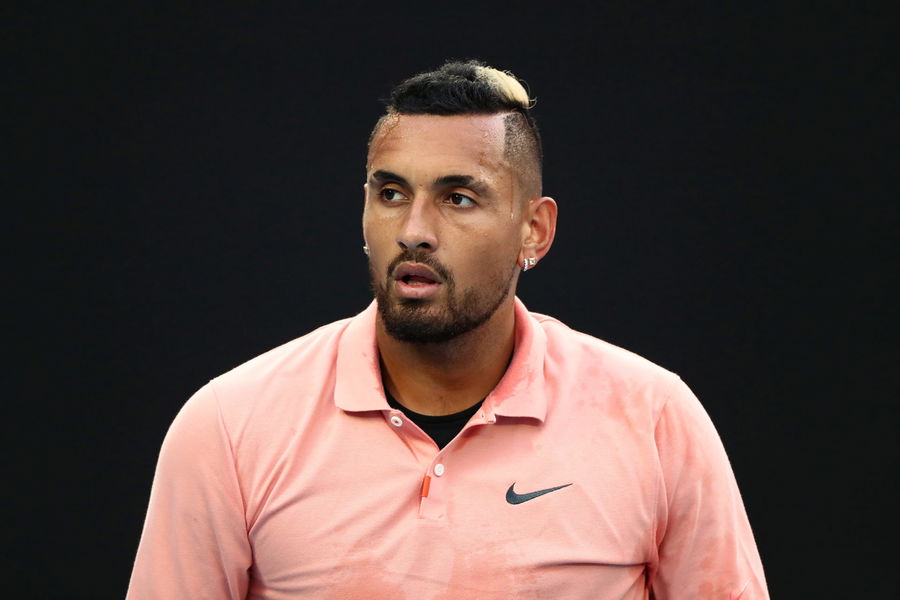 Nick Kyrgios of Australia looks on during his Men’s Singles fourth round match against Rafael Nadal of Spain on day eight of the 2020 Australian Open at Melbourne Park on January 27, 2020 in Melbourne, Australia. (Photo by Kelly Defina/Getty Images)
