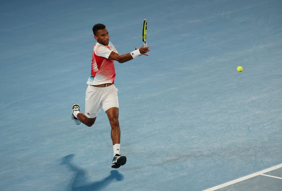 Tennis – Australian Open – Melbourne Park, Melbourne, Australia – January 26, 2022 Canada’s Felix Auger Aliassime in action during his quarter final match against Russia’s Daniil Medvedev REUTERS/Loren Elliott