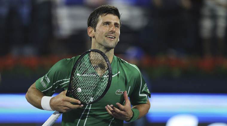 Dubai: Serbia’s Novak Djokovic celebrates after he beats Tunisia’s Malek Jaziri in a match of the Dubai Duty Free Tennis Championship in Dubai, United Arab Emirates, Monday, Feb. 24, 2020. AP/PTI(AP2_24_2020_000318B)