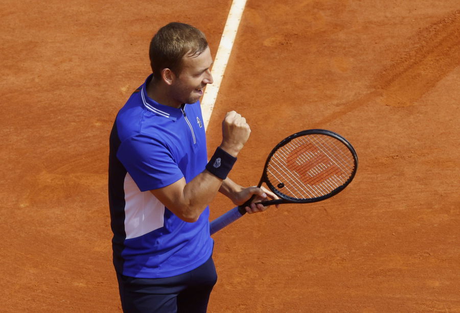 Tennis – ATP Masters 1000 – Monte Carlo Masters – Monte-Carlo Country Club, Roquebrune-Cap-Martin, France – April 15, 2021 Britain’s Dan Evans celebrates winning his third round match against Serbia’s Novak Djokovic REUTERS/Eric Gaillard
