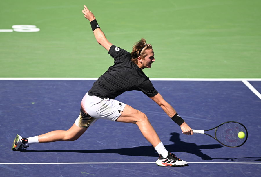 Mar 12, 2022; Indian Wells, CA, USA; Sebastian Korda (USA) hits a shot in his 2nd round match against Rafael Nadal (ESP) at the BNP Paribas open at the Indian Wells Tennis Garden. Mandatory Credit: Jayne Kamin-Oncea-USA TODAY Sports