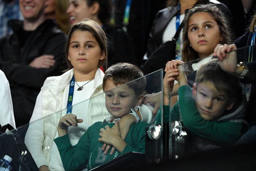 MELBOURNE, AUSTRALIA – JANUARY 20: The children of Roger Federer of Switzerland, Charlene, Myla, Lenny and Leo are seen during the Men’s Singles first round match between Roger Federer of Switzerland and Steve Johnson of the United States of America on day one of the 2020 Australian Open at Melbourne Park on January 20, 2020 in Melbourne, Australia. (Photo by Quinn Rooney/Getty Images)