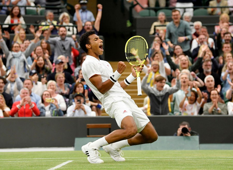 Tennis – Wimbledon – All England Lawn Tennis and Croquet Club, London, Britain – July 5, 2021 Canada’s Felix Auger Aliassime celebrates winning his fourth round match against Germany’s Alexander Zverev REUTERS/Toby Melville TPX IMAGES OF THE DAY
