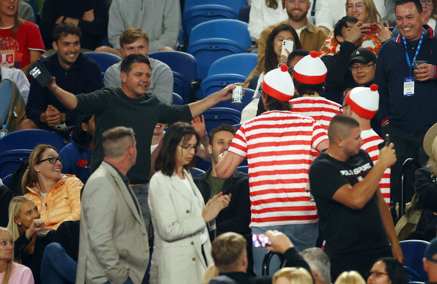 Tennis – Australian Open – Melbourne Park, Melbourne, Australia – January 19, 2023 Spectators are picture in the stands wearing fancy dress during the second round match between Serbia’s Novak Djokovic and France’s Enzo Couacaud REUTERS/Carl Recine