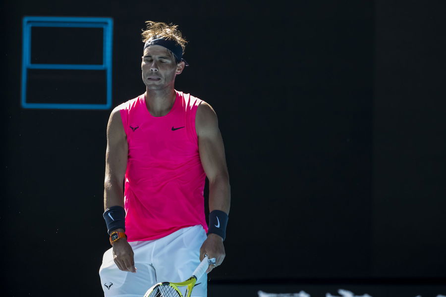 Rafael Nadal of Spain shows his disappointment during the first round of the 2020 Australian Open on January 21, 2020, at Melbourne Park in Melbourne, Australia. (Photo by Jason Heidrich/Icon Sportswire via Getty Images)