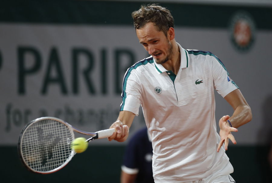 Tennis – French Open – Roland Garros, Paris, France – June 8, 2021 Russia’s Daniil Medvedev in action during his quarter final match against Greece’s Stefanos Tsitsipas REUTERS/Sarah Meyssonnier