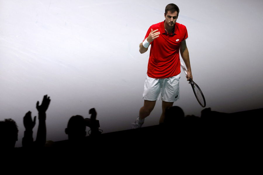 Tennis – Davis Cup Semi-Finals – Serbia v Croatia – La Caja Magica, Madrid, Spain – December 3, 2021 Croatia’s Borna Gojo reacts during his match against Serbia’s Dusan Lajovic REUTERS/Susana Vera