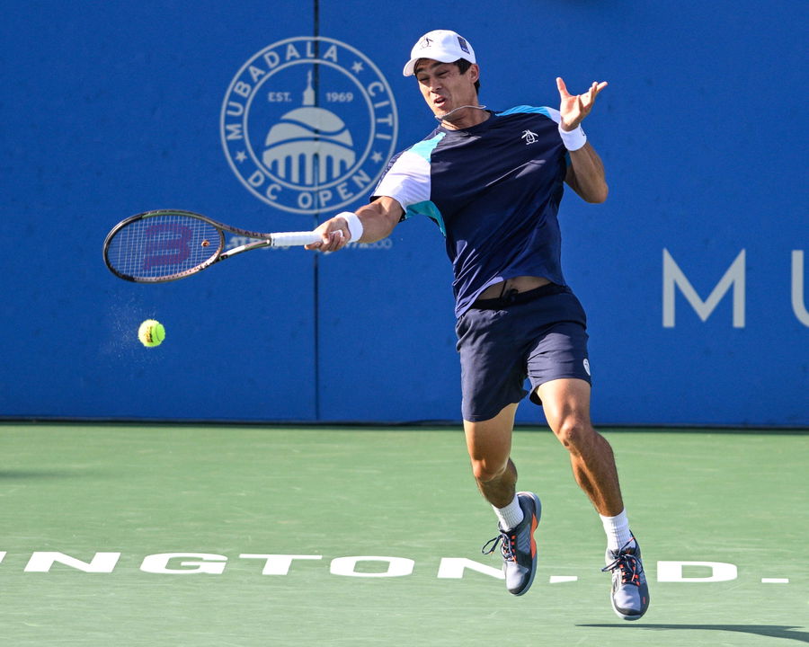 July 31, 2023, Washington, D.C, U.S: MACKENZIE MCDONALD hits a forehand during his match at the Rock Creek Tennis Center. Washington U.S. – ZUMAg196 20230731_zap_g196_040 Copyright: xKylexGustafsonx