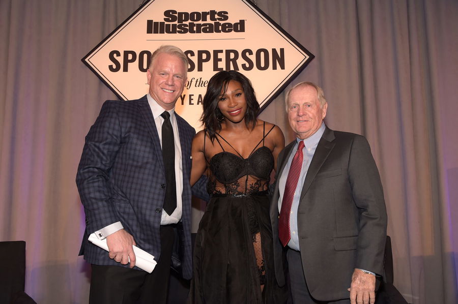NEW YORK, NY – DECEMBER 15: (L-R) Football legend Boomer Esiason, SI 2015 Sportsperson of the Year Serena Williams, and SI Muhammad Ali Legacy Award Recipient Jack Nicklaus attend Sports Illustrated Sportsperson of the Year Ceremony 2015 at Pier 60 on December 15, 2015, in New York City. (Photo by Theo Wargo/Getty Images for Sports Illustrated)