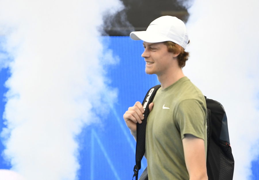 Tennis – A Day at the Drive Exhibition – Memorial Drive Tennis Club, Adelaide, Australia – January 29, 2021 Italy’s Jannik Sinner enters the court at A Day at the Drive REUTERS/Morgan Sette