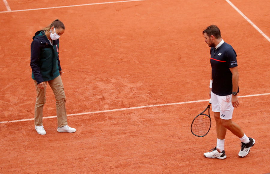 Tennis – French Open – Roland Garros, Paris, France – October 2, 2020 Switzerland’s Stan Wawrinka speaks with a match official during his third round match against France’s Hugo Gaston REUTERS/Charles Platiau