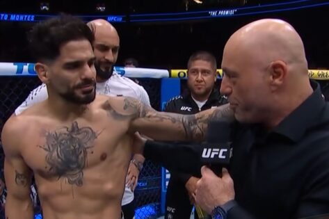 Joe Rogan shows support to emotional UFC 326 fighter who took the time to deliver a heartfelt tribute for his late coach inside the Octagon.