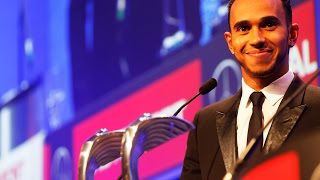 Hamilton did not attend the reception at the Grosvenor House Hotel in London, but sent a video message to acknowledge his awards.