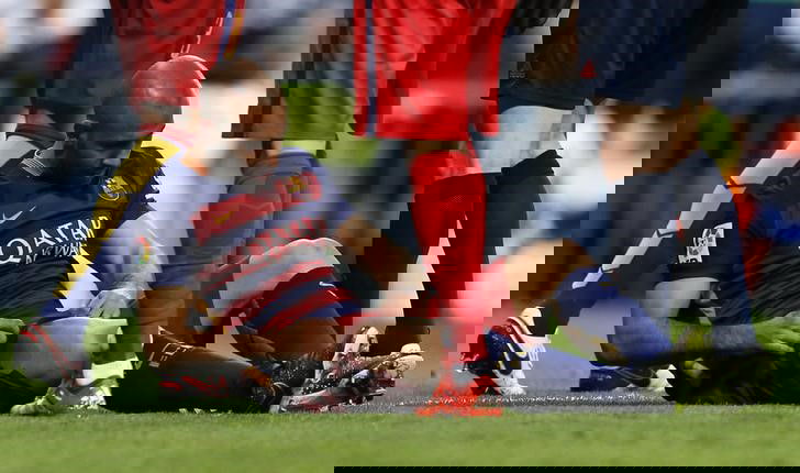 Football – Real Madrid v Barcelona – Liga BBVA – Santiago Bernabeu – 21/11/15 Barcelona’s Javier Mascherano after sustaining an injury Reuters / Stringer Livepic