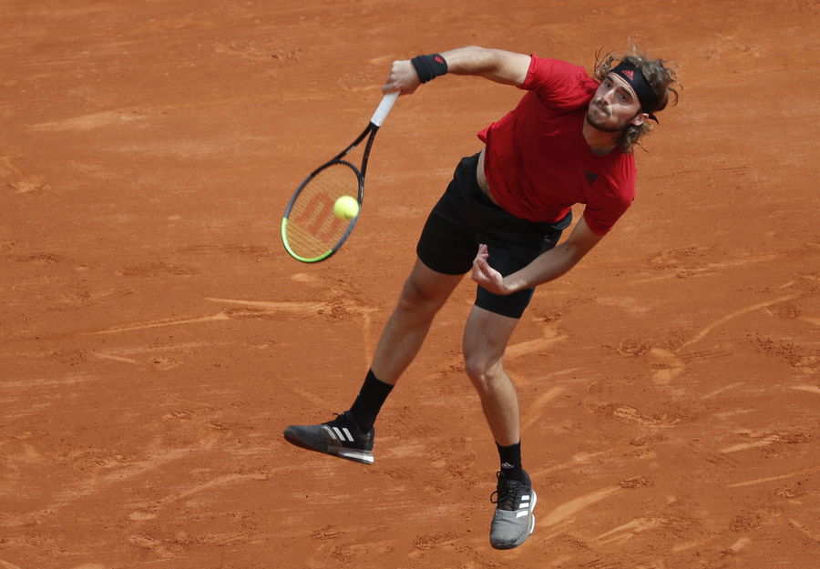 Tennis – ATP Masters 1000 – Monte Carlo Masters – Monte-Carlo Country Club, Roquebrune-Cap-Martin, France – April 13, 2021 Greece’s Stefanos Tsitsipas in action during his second round match against Russia’s Aslan Karatsev REUTERS/Eric Gaillard