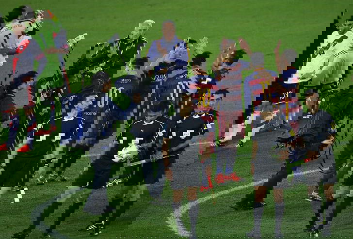 The referee made some horrendous decisions in this match as the Club River Plate players resorted to UFC tactics as the match progressed. The game deserved a red to at least one of the men from the Argentinean club and it was an utter surprise to see the referee see off some of the horrible tackles that were made on the likes of Suarez, Busquets and Neymar in particular.