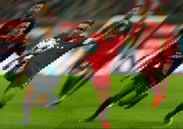Football – Bayern Munich v Arsenal – UEFA Champions League Group Stage – Group F – Allianz Arena, Munich, Germany – 4/11/15 Arsenal’s Alexis Sanchez in action with Bayern Munich’s Philipp Lahm Reuters / Michael Dalder Livepic