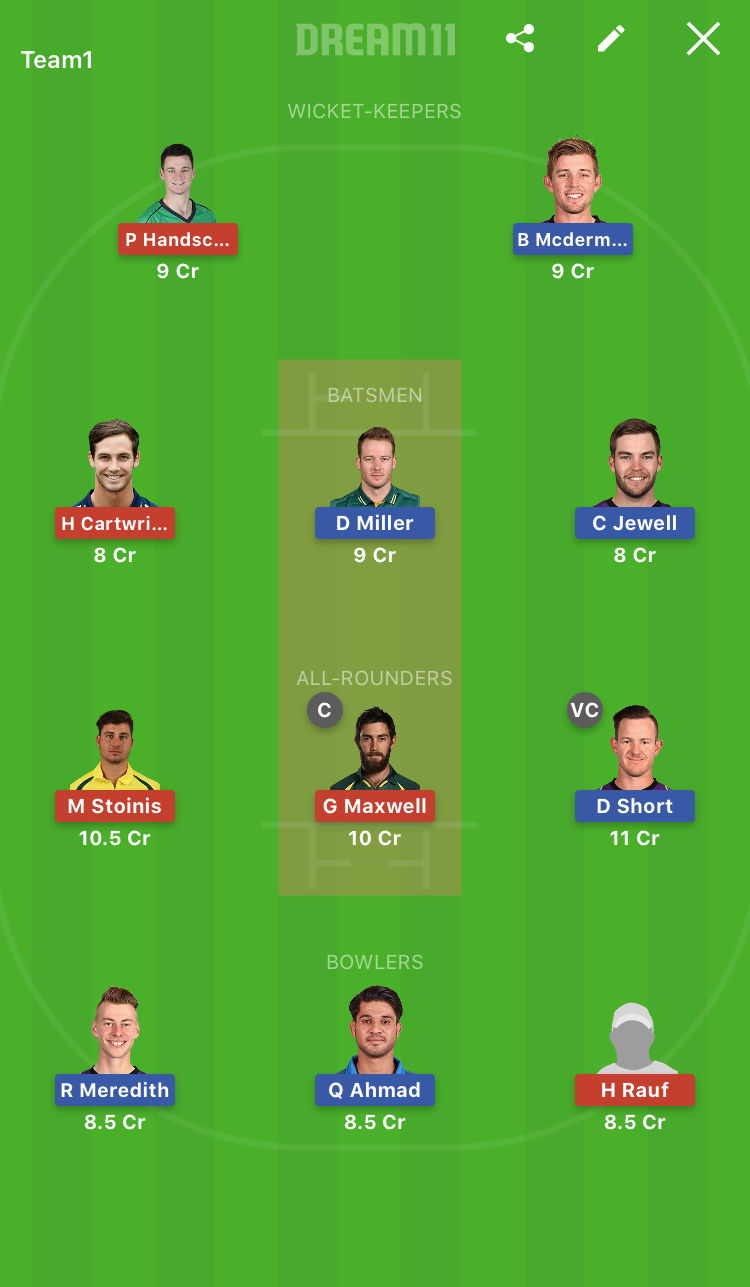 Usman Khawaja, Alex Hales, Callum Ferguson (C), Matthew Gilkes (WK), Alex Ross, Daniel Sams, Chris Morris, Chris Green, Arjun Nair, Chris Tremain, Jonathan Cook