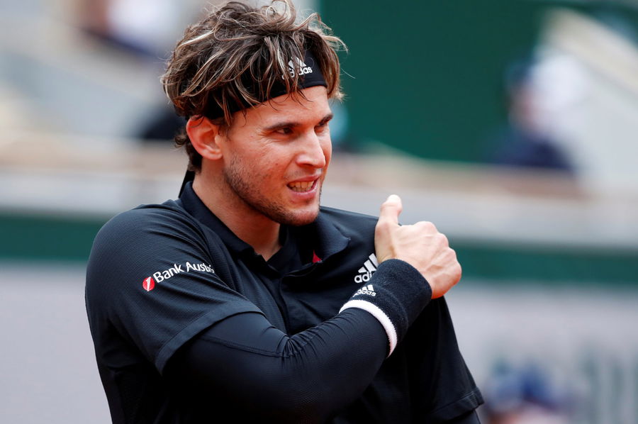 Dominic Thiem reacts during his French Open match. REUTERS/Gonzalo Fuentes