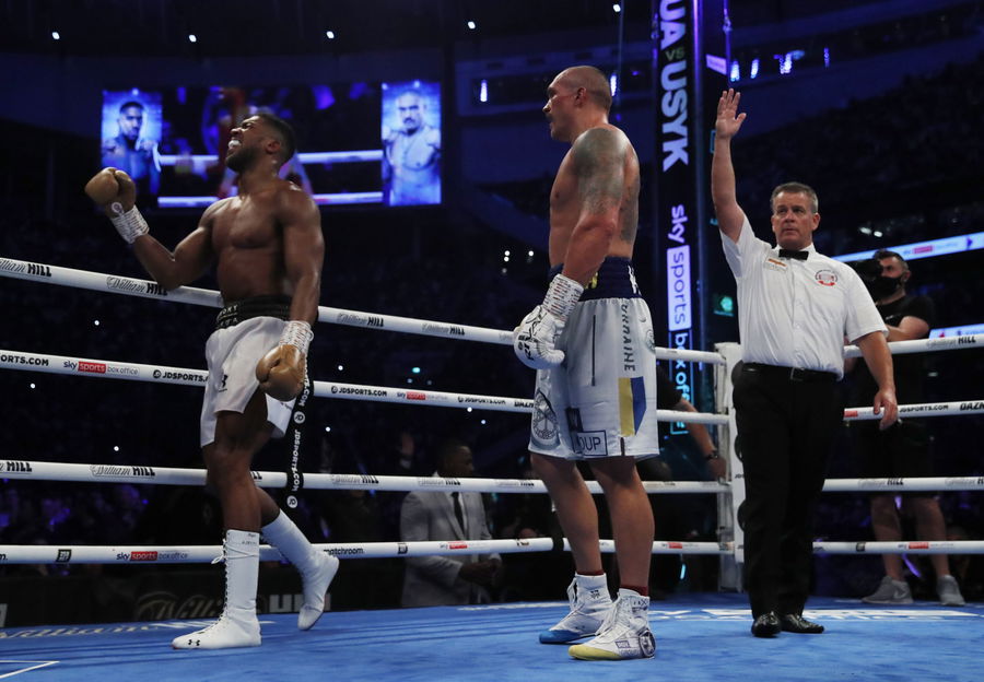 Boxing – WBA, IBF & WBO Heavyweight Titles – Anthony Joshua v Oleksandr Usyk – Tottenham Hotspur Stadium, London, Britain – September 25, 2021 Anthony Joshua reacts after his fight against Oleksandr Usyk Action Images via Reuters/Andrew Couldridge